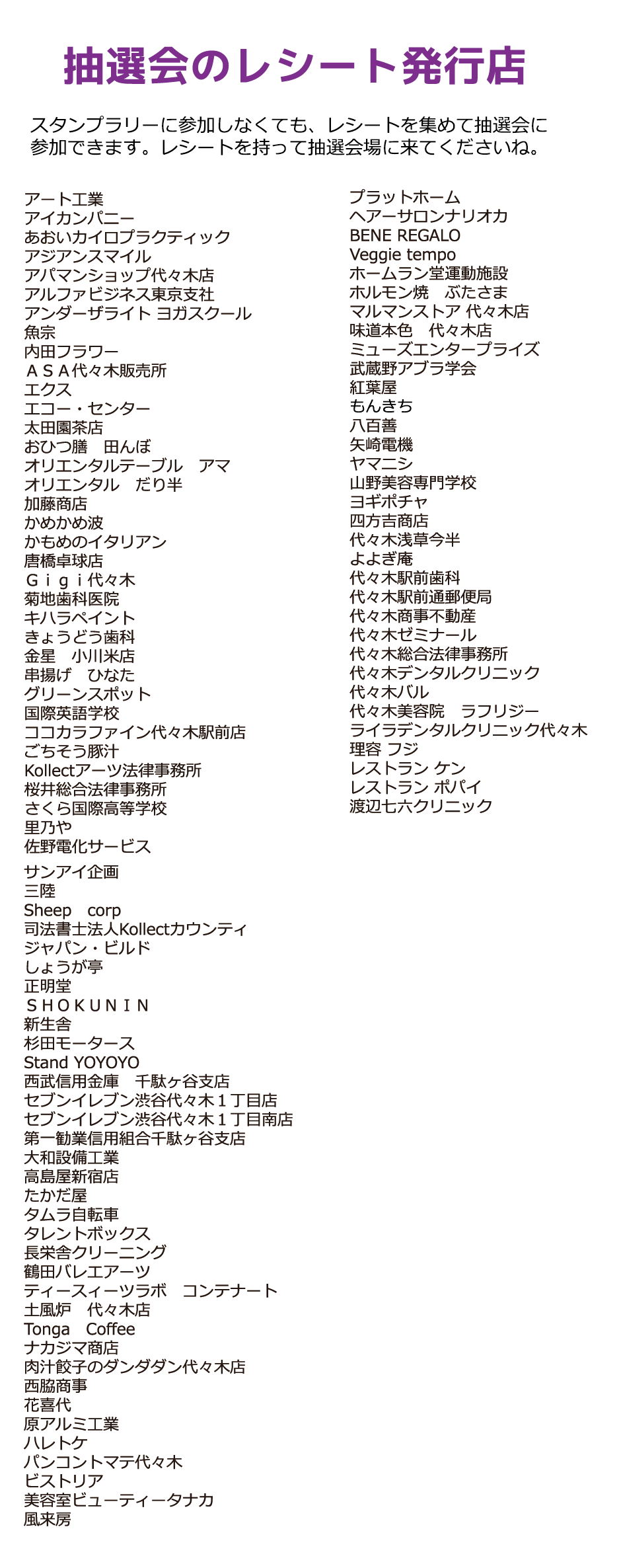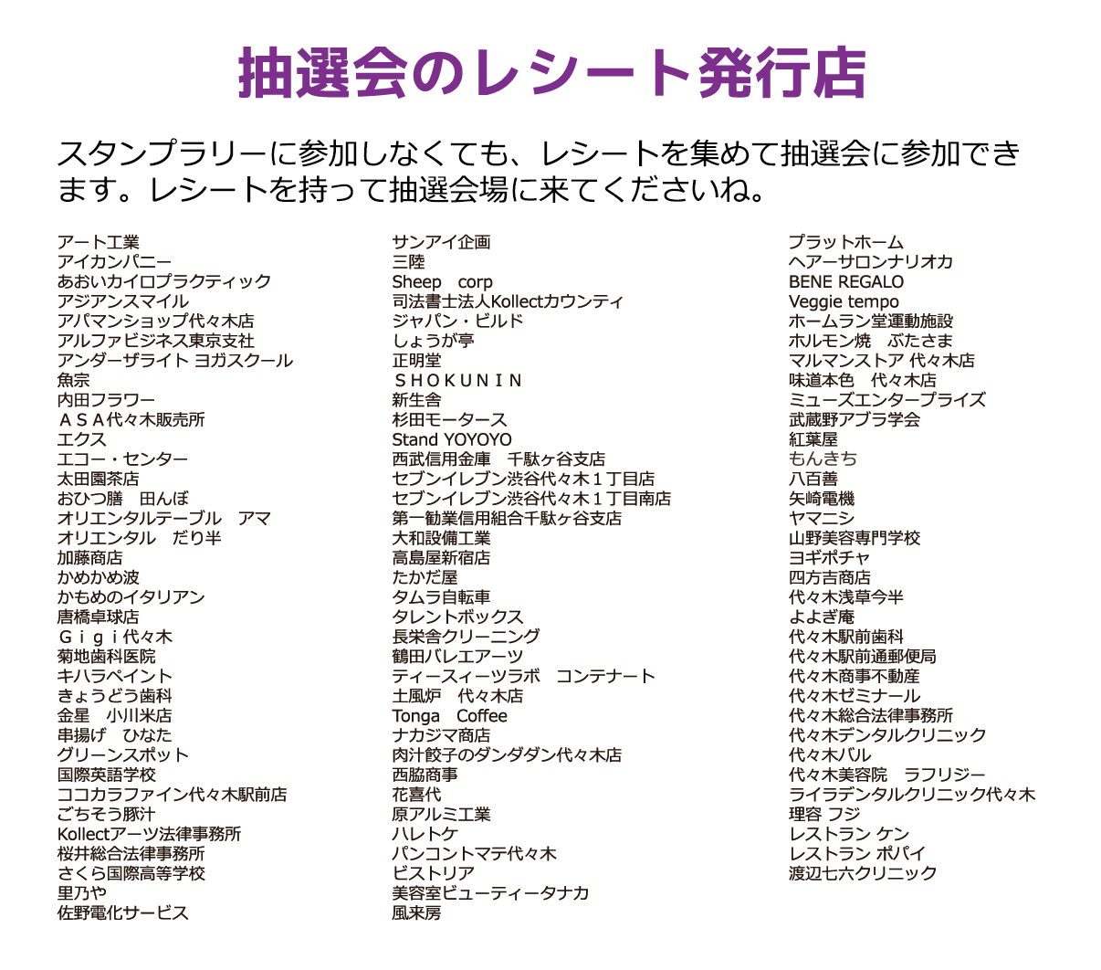 | 景品交換くじ会場 | ふれあい会館1F (渋谷区代々木1丁目37−10) |
